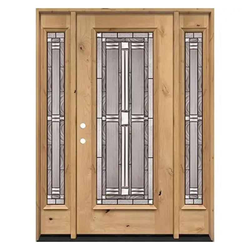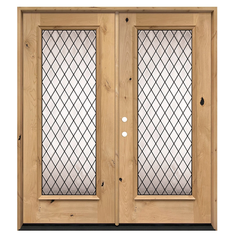 Large Size Traditional Double Design Exterior Front Door Knotty Alder Rustic Waterproof Finished Surface Swing